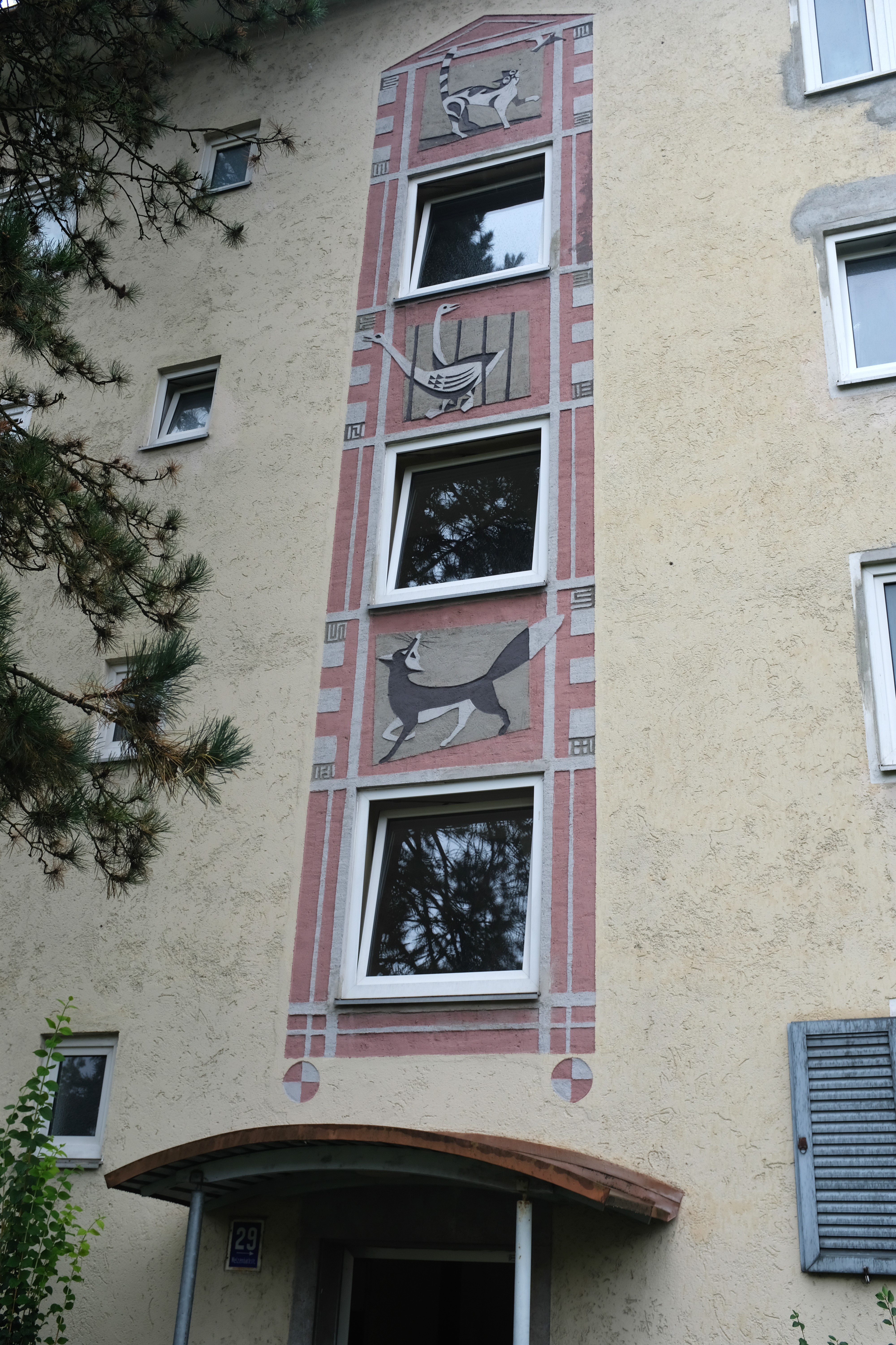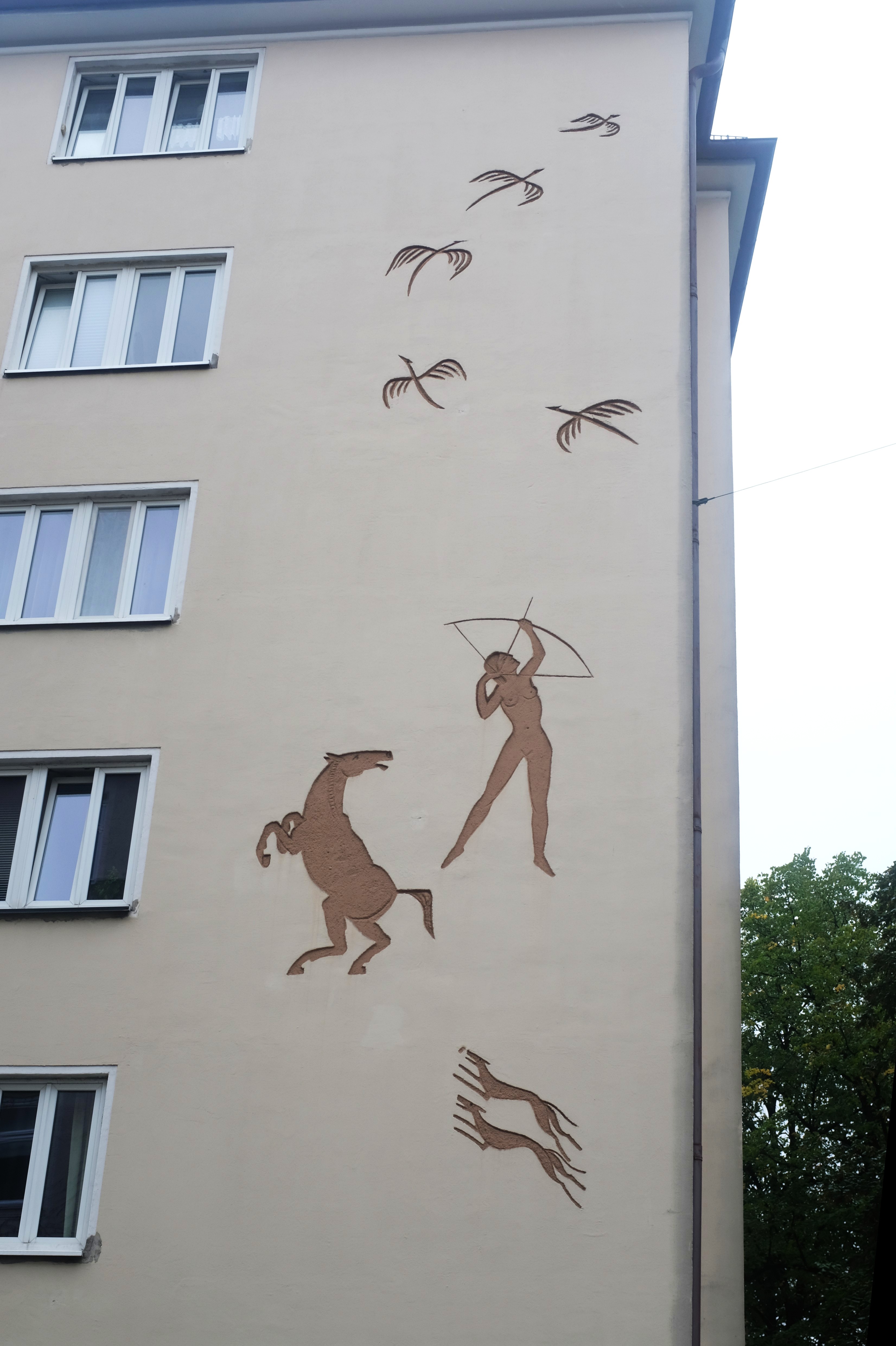 München, Candidstraße 28 (Wandgemälde mit Sgraffito) Zur Karte DE, München